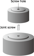 The imminent characteristic of the Cat and Mouse is a screw hole on the top side of the spike. When you look at it closely, there is a same screw hole on the bottom side of the cup. By using the screw hole and attached screw for joint (M3x7mm), connection as shown on the right figure is possible.
